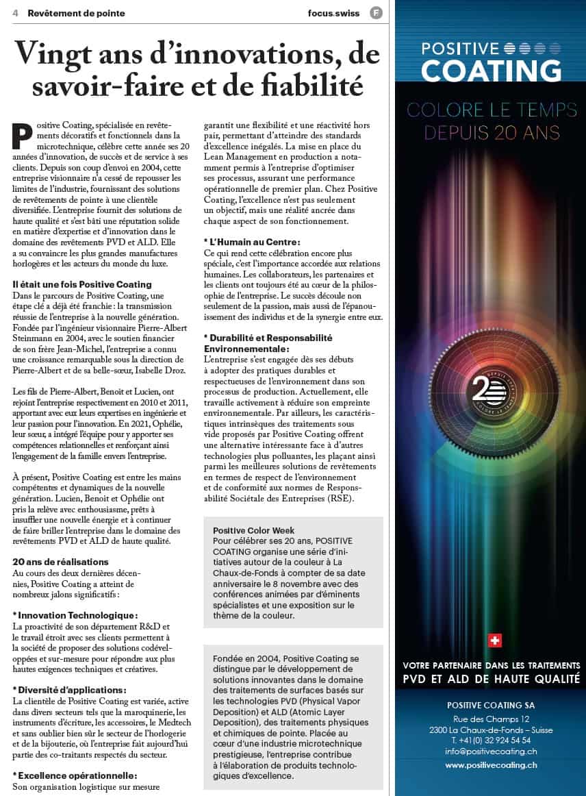 # 20 ANS D'INNOVATION ET LES DÉFIS DU TRAITEMENT DE SURFACE