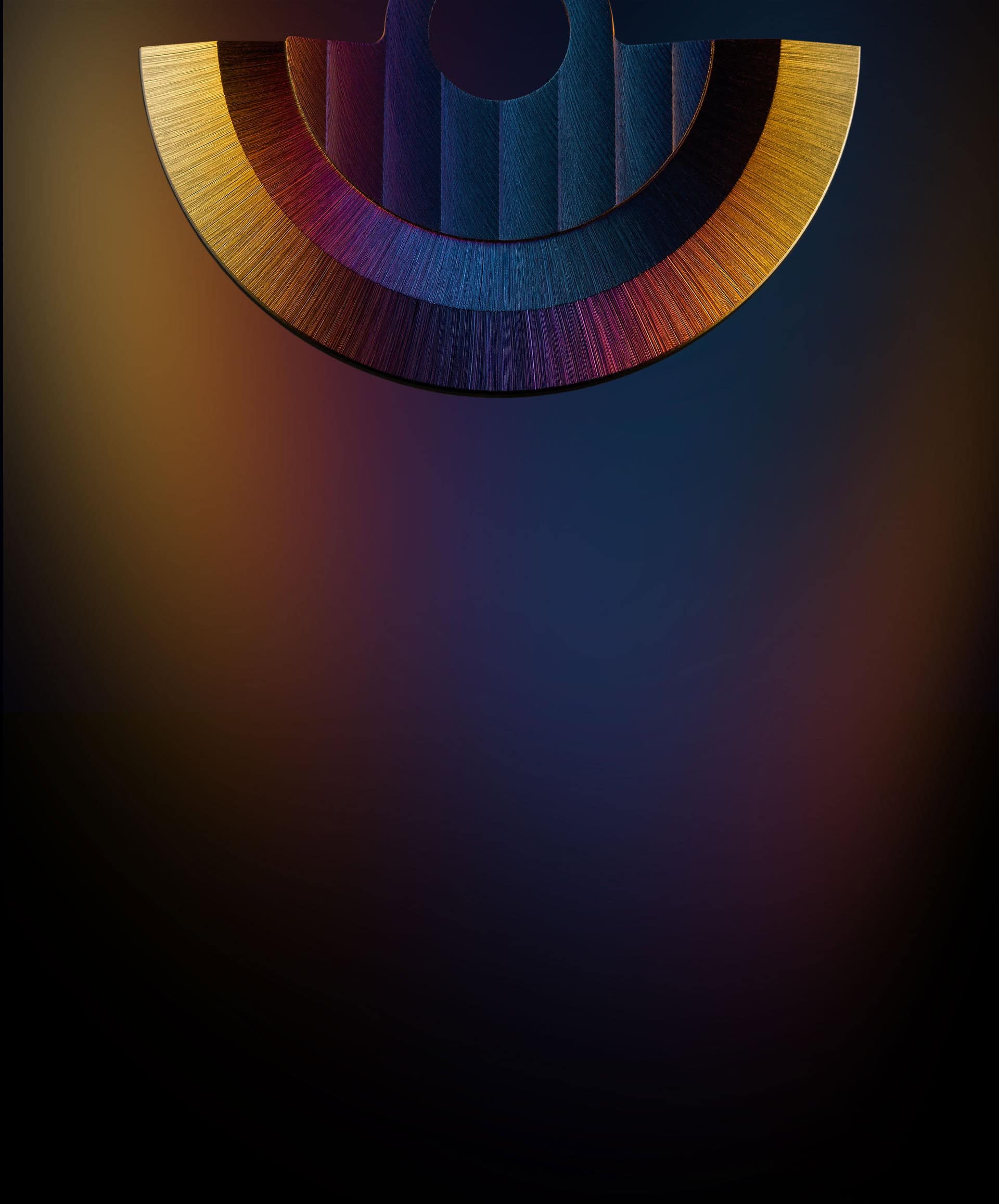 Première mondiale, ce revêtement permet d’intégrer un dégradé multicolore à des composants horlogers. Inspiré des couleurs de l’arc-en-ciel, il apporte un contraste saisissant et une signature visuelle puissante aux pièces revêtues.