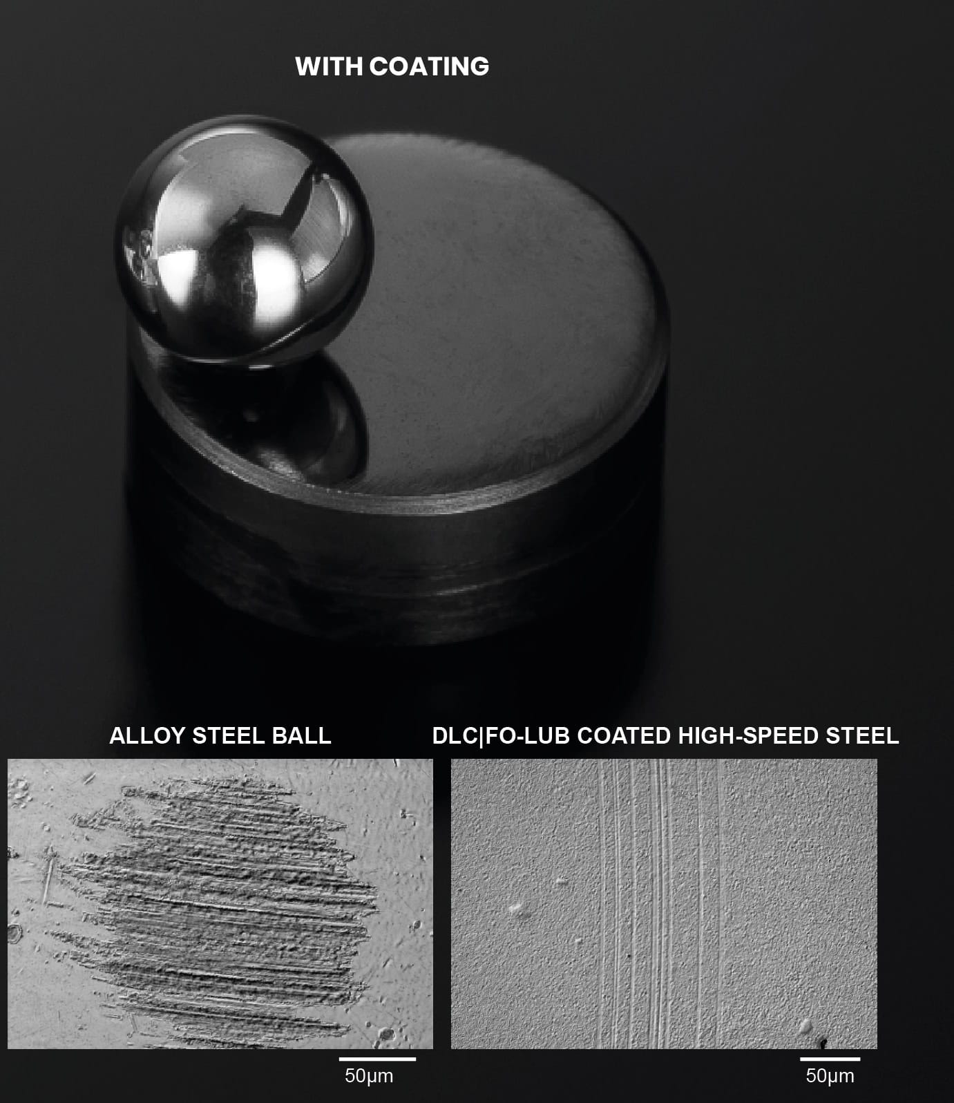 The DLC|FO-LUB coating is therefore the ideal solution for mechanical parts that need to be hardened and lubricated.